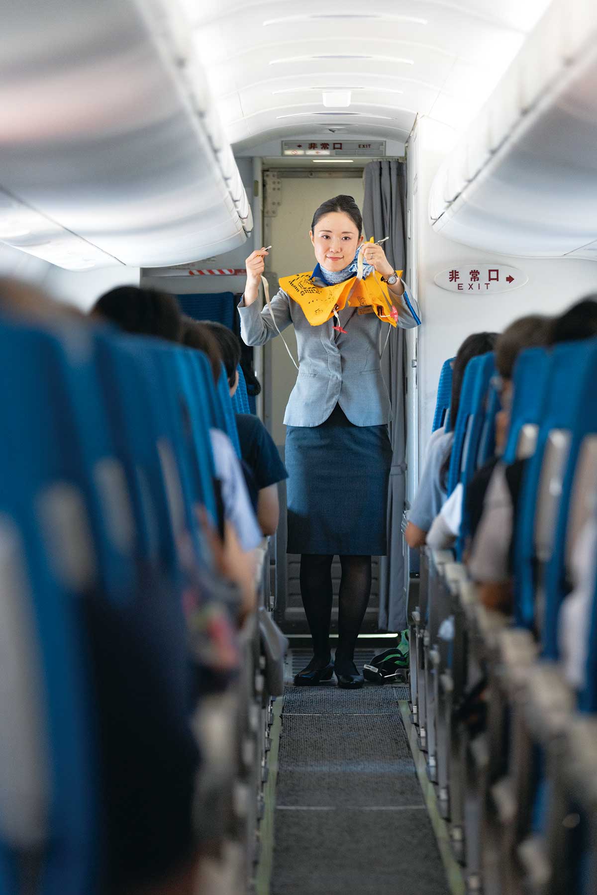 “各位旅客,现在开始为您介绍紧急设备。请注意空乘人员的示范……”