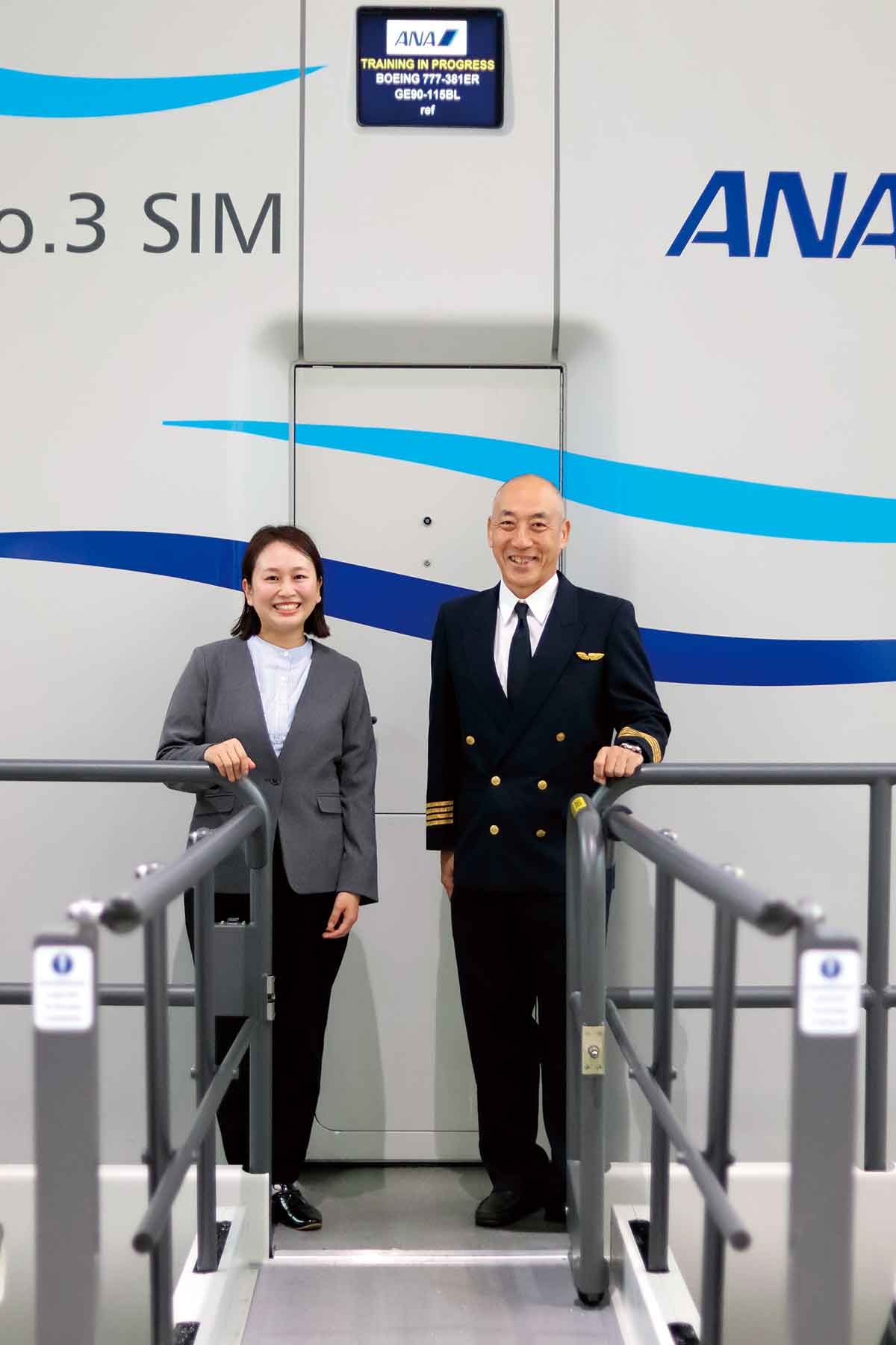 对谈地点选在了教官水元的“主战场”,设有B7飞行模拟机的综合训练设施“ANA Blue Base”。自称“时常接受教官们熏陶、不断学习”的猿田拜访了水元,共同探讨B7的历史与魅力。
