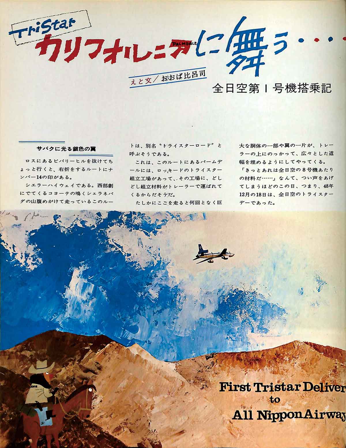 1974年2月号 「TriStar カリフォルニアに舞う… 全日空第1号機搭乗記 えと文/おおば比呂司」より