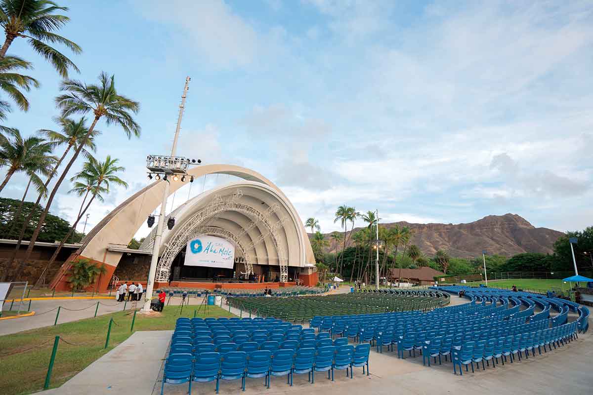 世界的ピアニストの辻井伸行さんをハワイへお迎えするのも4度目となります。ダイヤモンドヘッドを望み、ヤシの木がそびえ、海からの風が吹きぬけるワイキキシェルの会場後方には、芝生席もあり、小さな子どもたちを連れたローカルファミリーがピクニック気分で、本物のクラシック音楽に触れることができます。