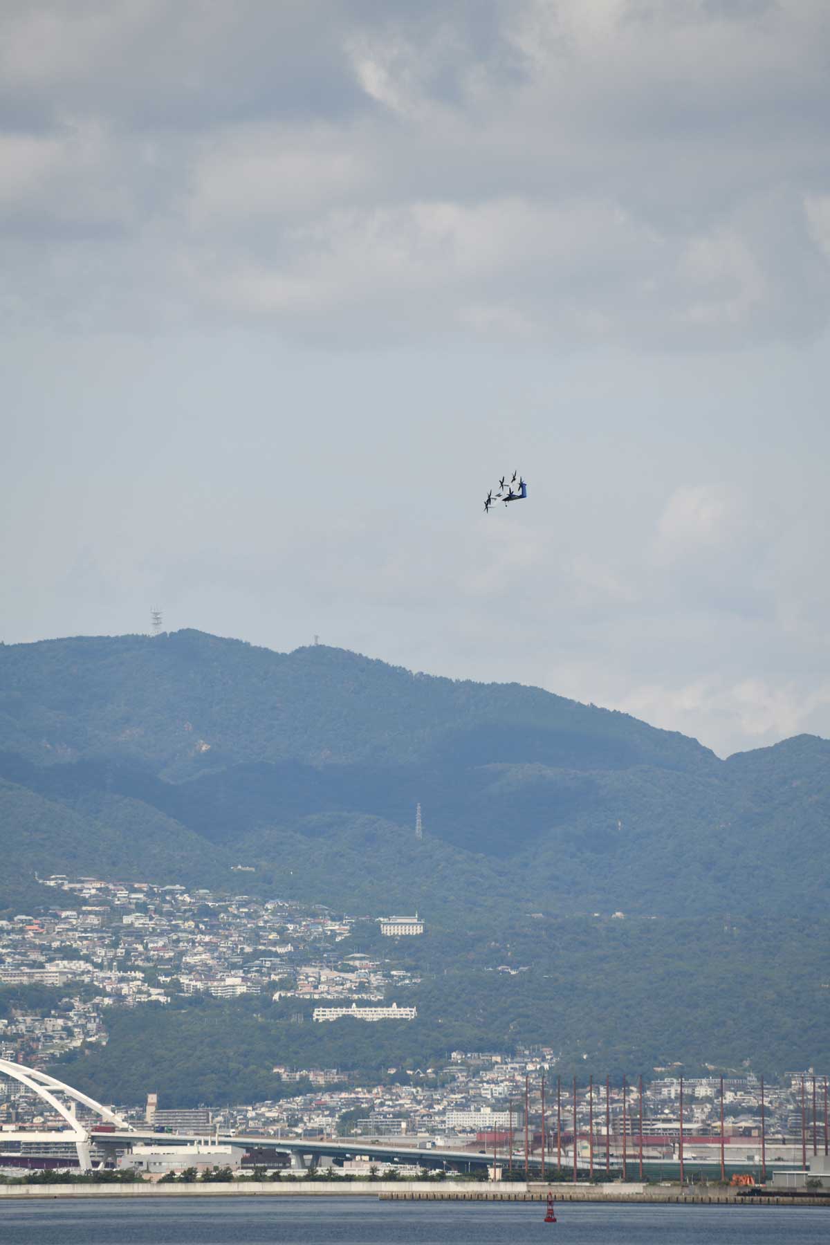 そのまま、向こう側に見える神戸の山並みをバックに、豆粒ほどに小さく見えるまで周回。