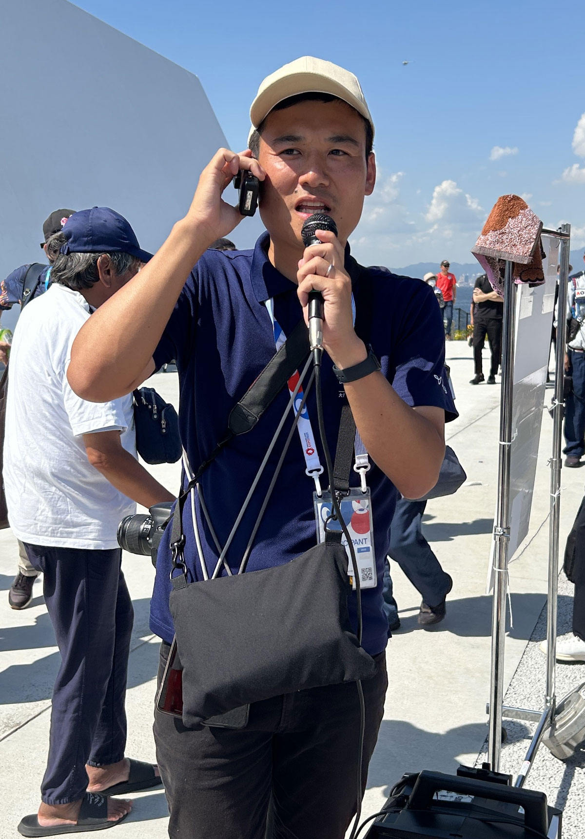 フェンスの外で来場者に向けて解説を行ったチームリーダーの保理江によれば、「万博会場のある夢洲から関空まで、わずか約10分で移動できます」 とのこと。