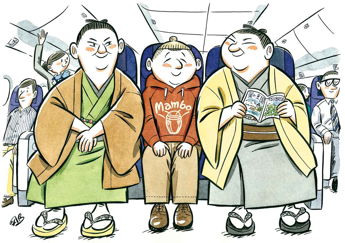 歳を重ねて気がつけば、本場所を前相撲、続く序の口の取り組みから中入り、結びの一番まで朝からじっくり9時間以上に及ぶ生の相撲観戦というのが、私にとっては飛行機に乗り続けるのと同等の尊い趣味となった。言っても羽田→シドニー片道の搭乗時間とほぼ同じに過ぎないのだが、一人あたりの占有面積は、枡席でも溜席(たまりせき)でも飛行機のエコノミー席の半分程度しかない。これは、がんばって結びの一番まで耐えるしかない。