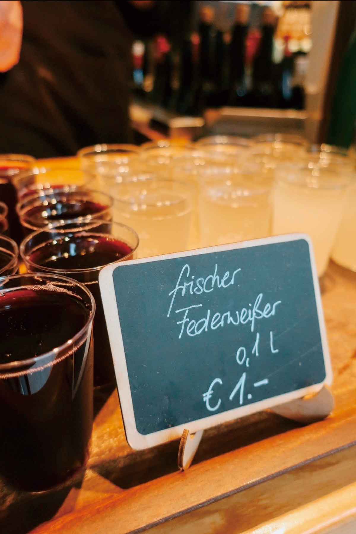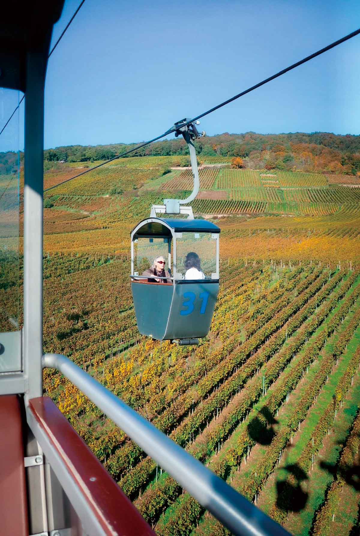 フランクフルトから電車で約1時間。ライン川沿いにあるリューデスハイムは、ケーブルカーから眺めるブドウ畑と古城が絵本のように美しい街です。秋になると、名物の発酵途中のワイン「フェーダーヴァイサー」が店頭にずらりと並び、一カップ1ユーロからと気軽に楽しめるのも魅力。