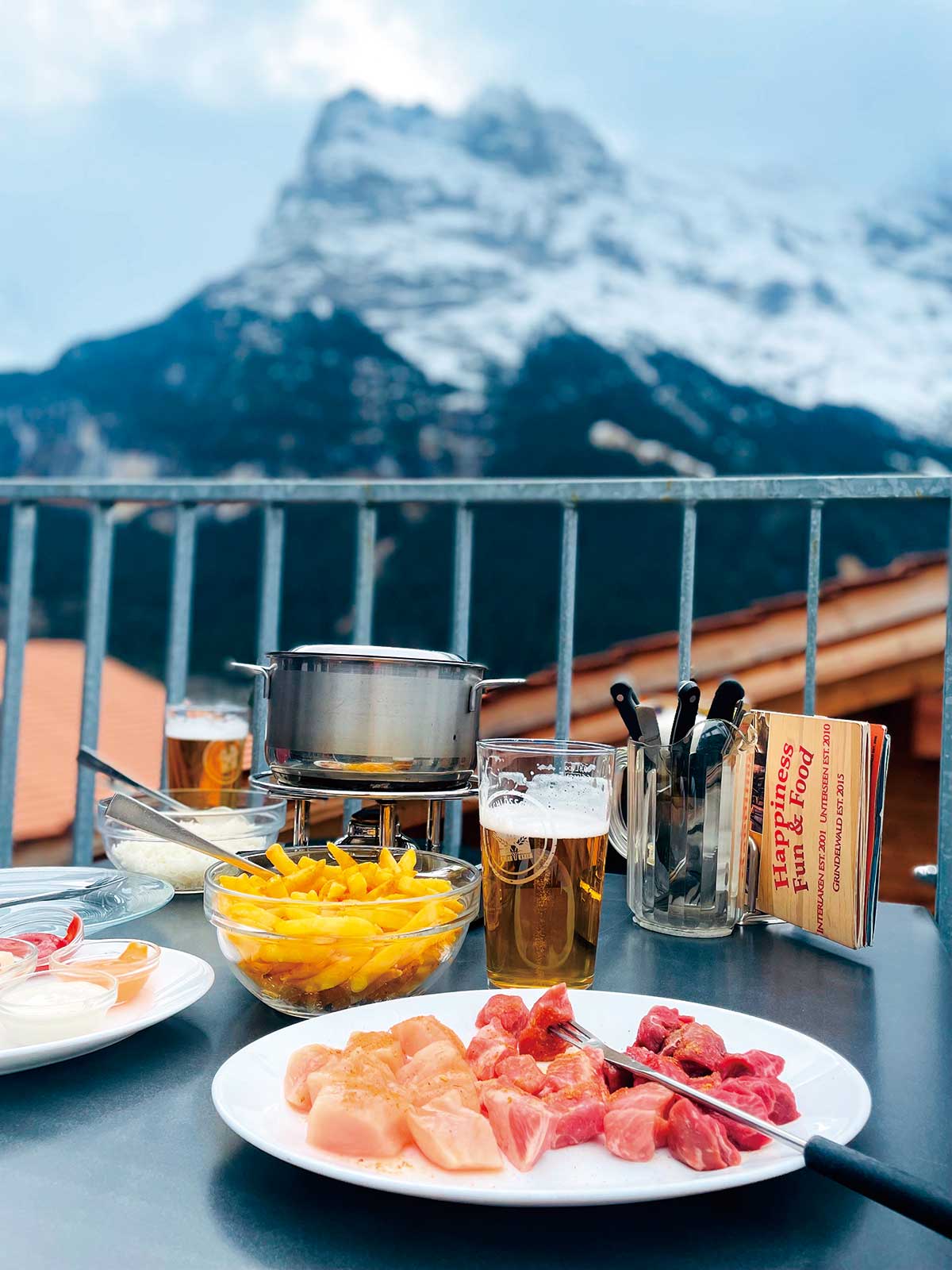 【スイス・グリンデルヴァルト】山々を眺めながらいただく名物のオイルフォンデュ