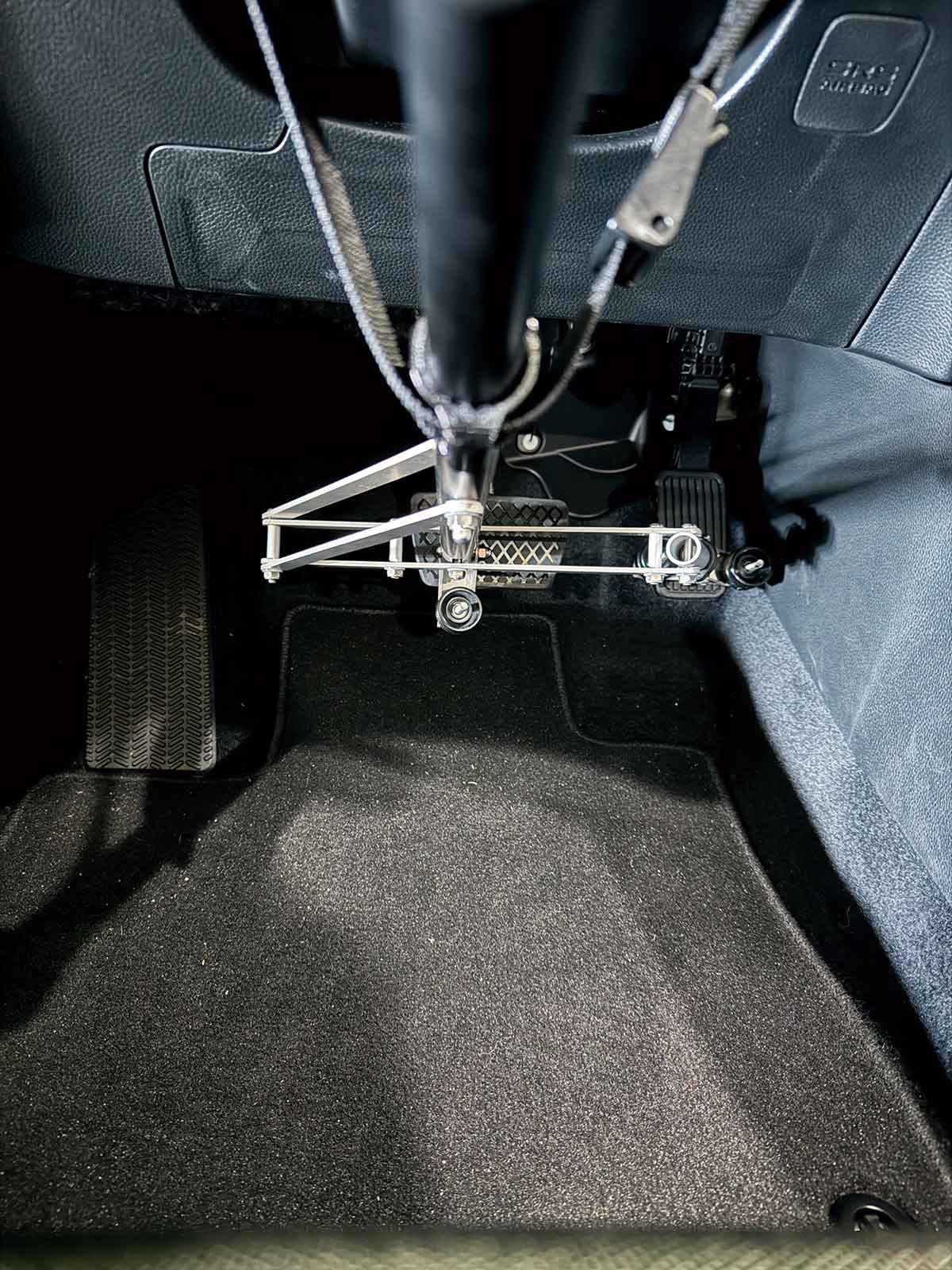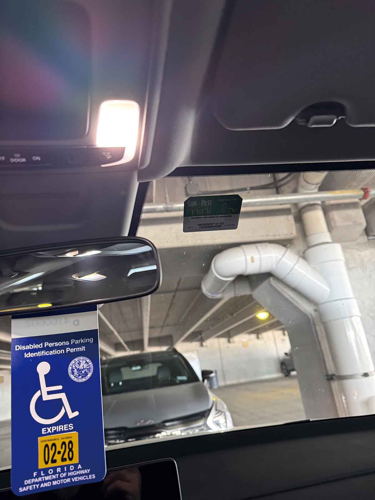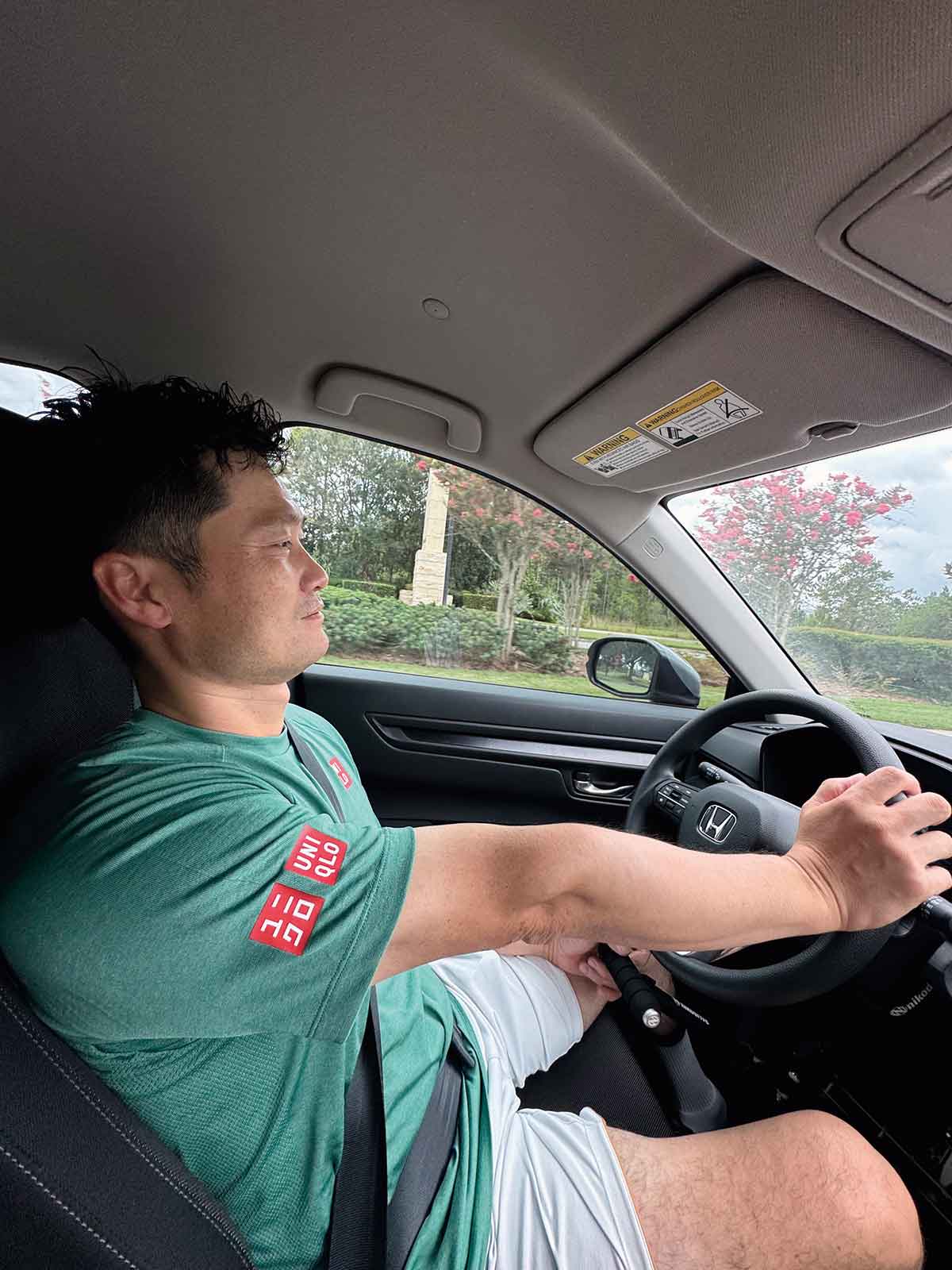 ちなみに、私は運転する際、アクセルやブレーキといった一般的には足を使う操作も、特別な装置を使って、すべて手で行います。日本では車の購入時にリクエストして、手動運転装置が装着された状態で納車してもらっていました。オーランドでは、従来もレンタカーを運転する際などに使っていた携帯式の装置を持ち込み、自分で取り付け運転しています。