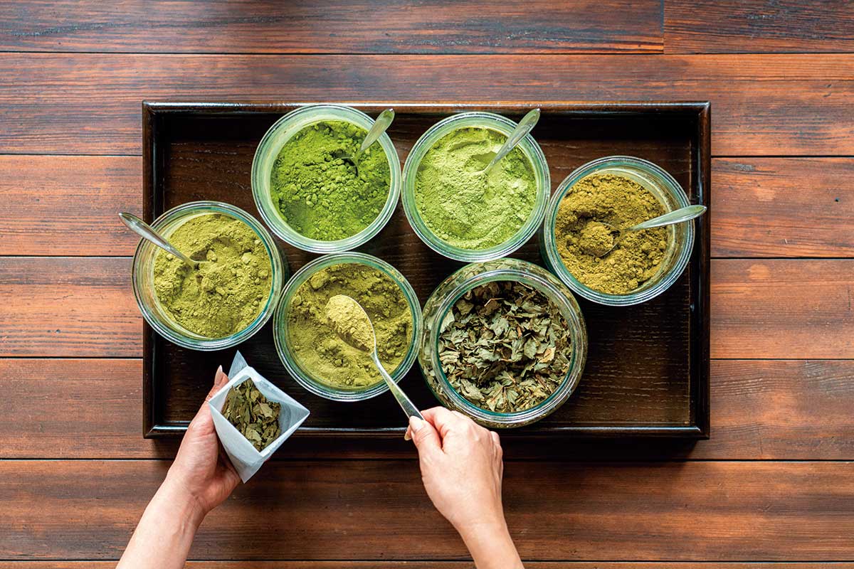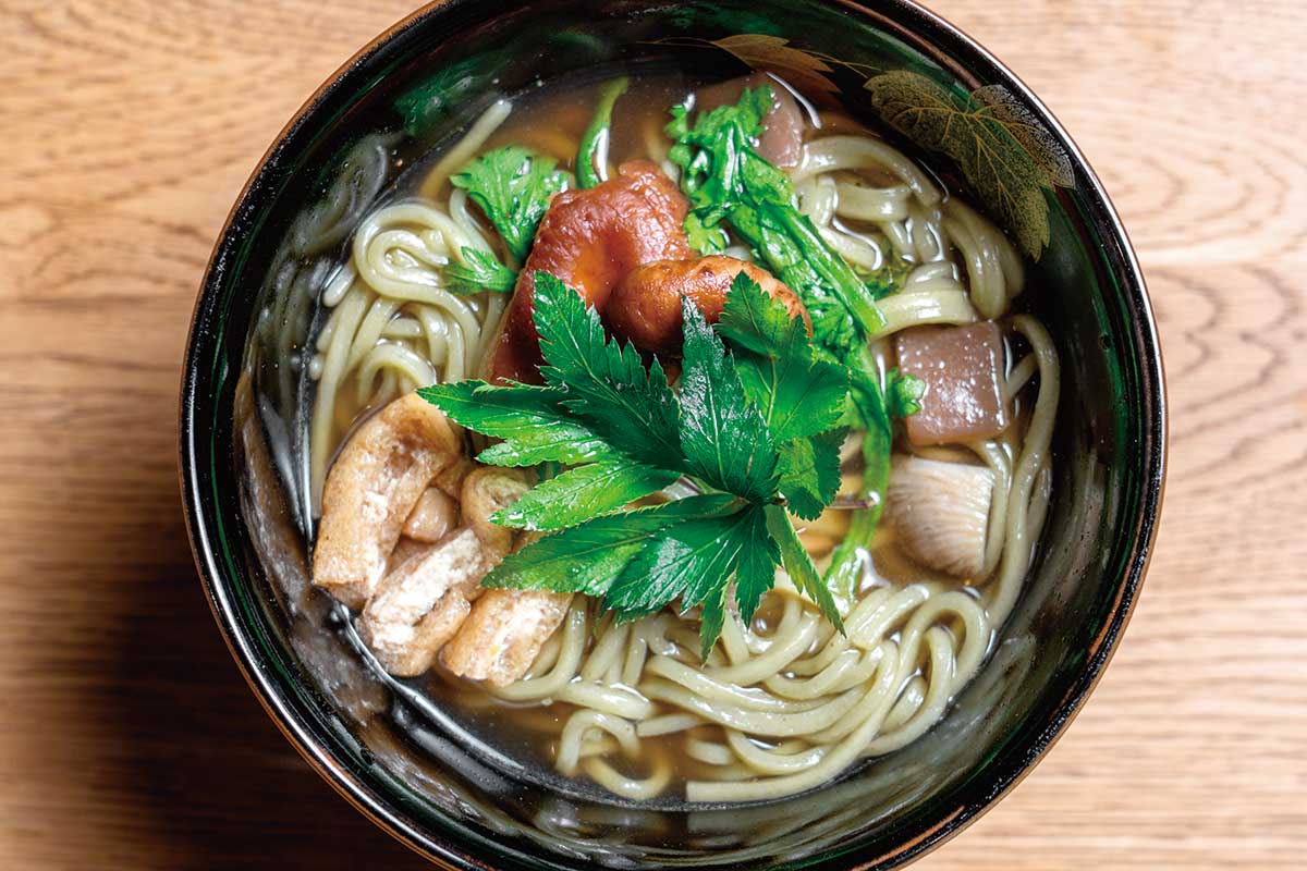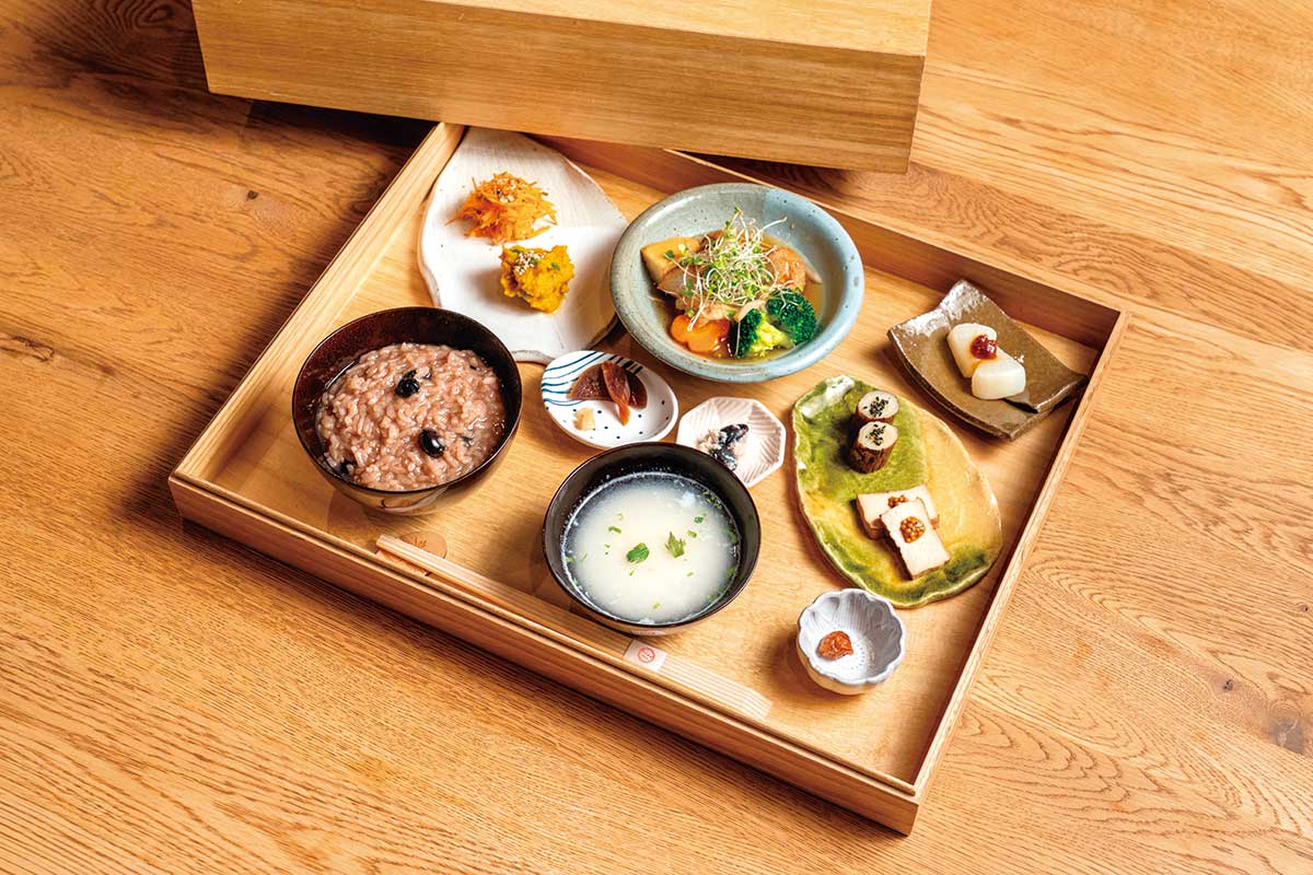 大和当帰のほか、にんじん、セロリ、ごぼう、大葉、ほうれんそうなどの大和野菜の粉末も調合できる。和の朝ごはんやイノベーティブイタリアンの夕食でも当帰を使用。宇陀のお土産には名物の「大和当帰葉うどん」が人気。