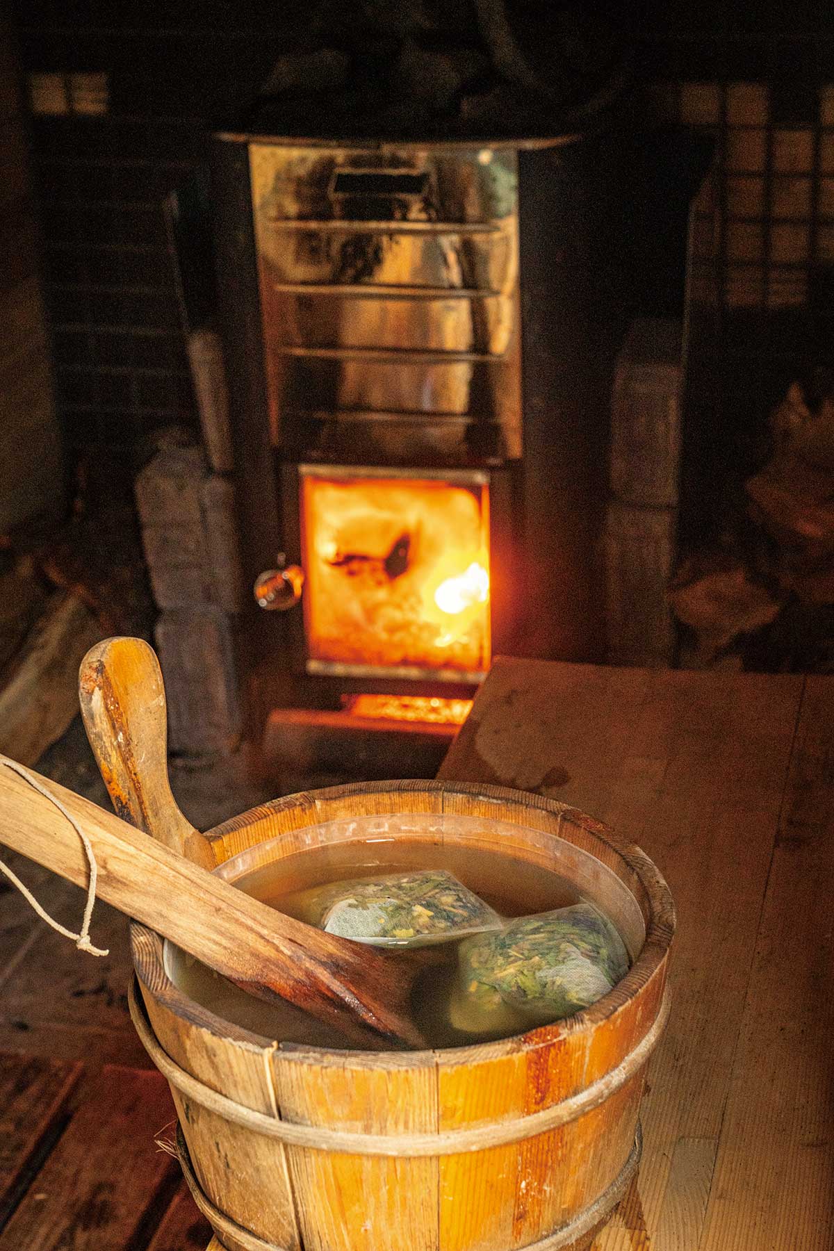 やたきやは、4つの客室を持つ古民家リノベーション宿。全室にヒノキ張りの浴室、信楽焼の浴槽があり、大和当帰をふんだんに使用した薬湯が味わえる。イベントとしてテントサウナを設置する際は、ロウリュに当帰を利用。宿泊客が自分で配合した「入浴剤」を作ることができる。