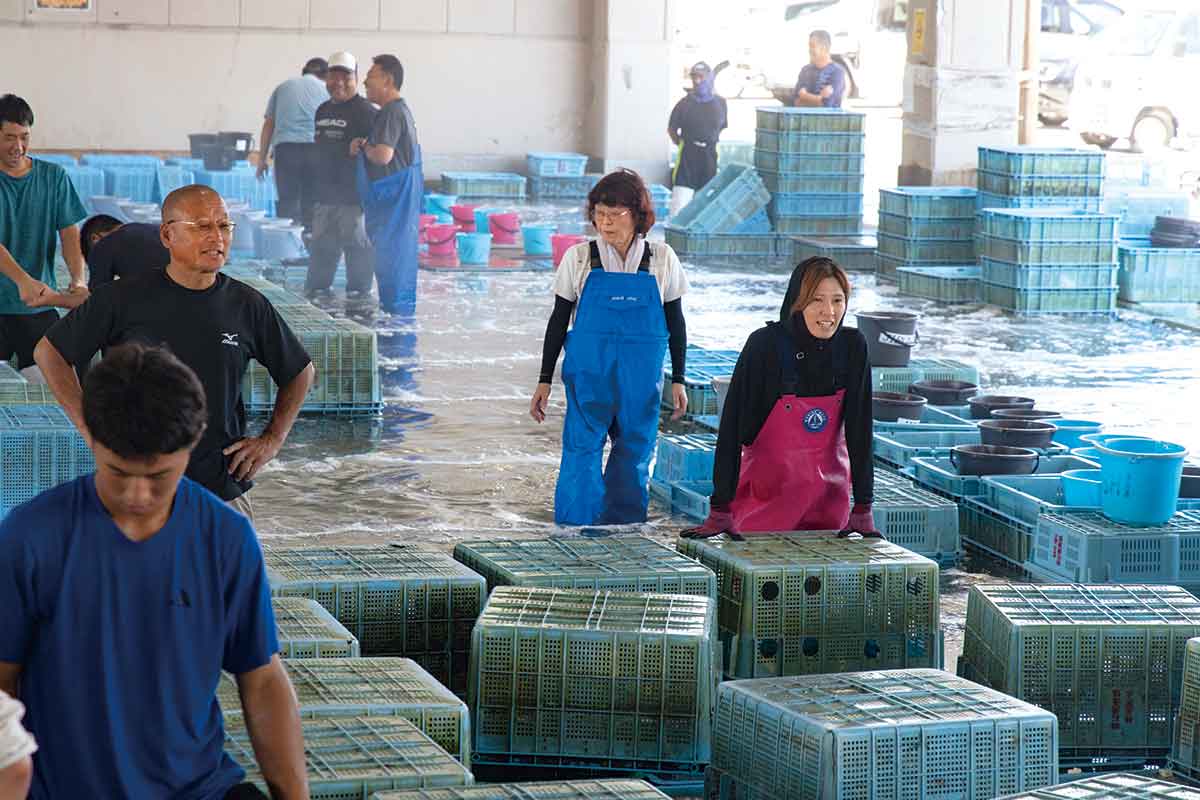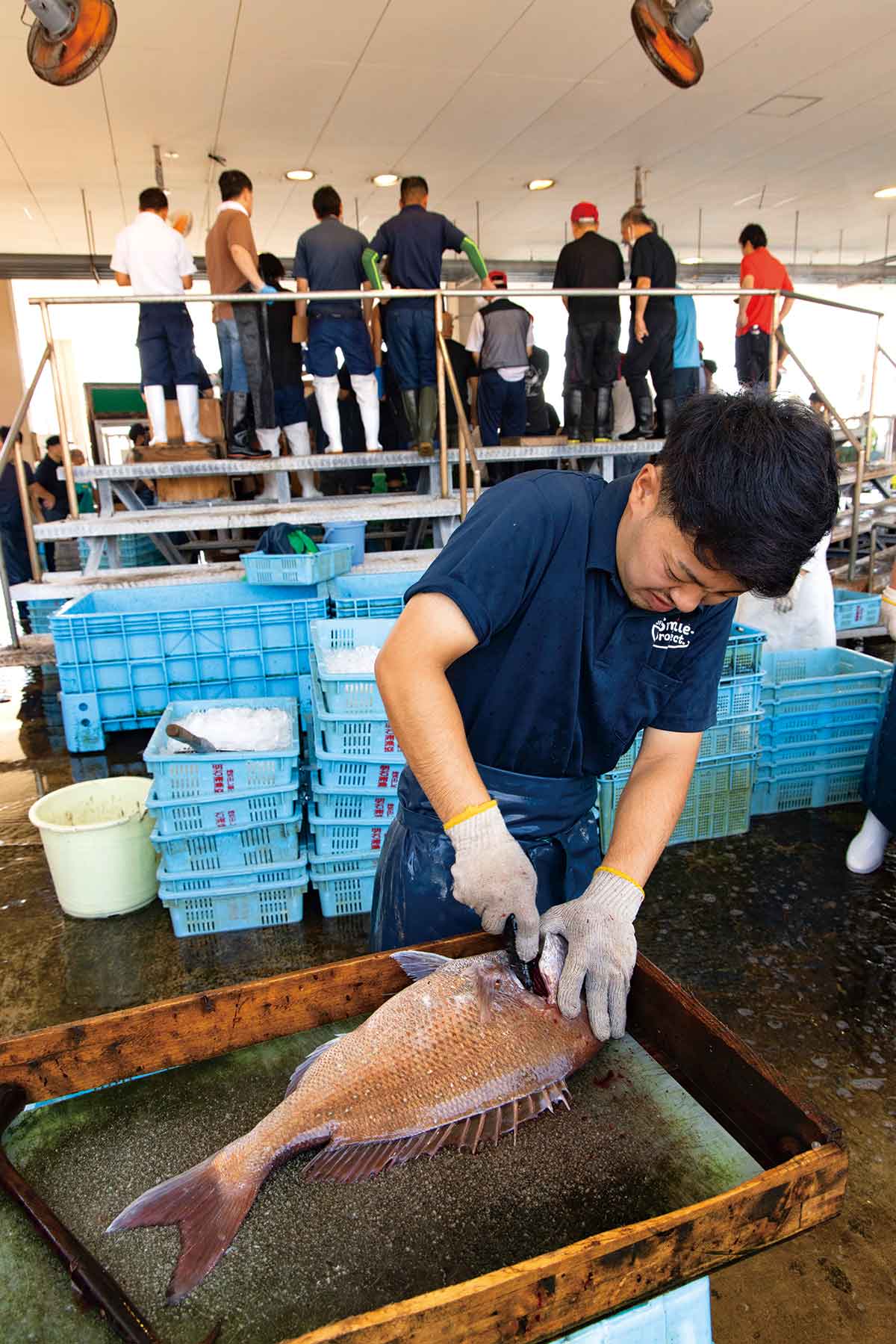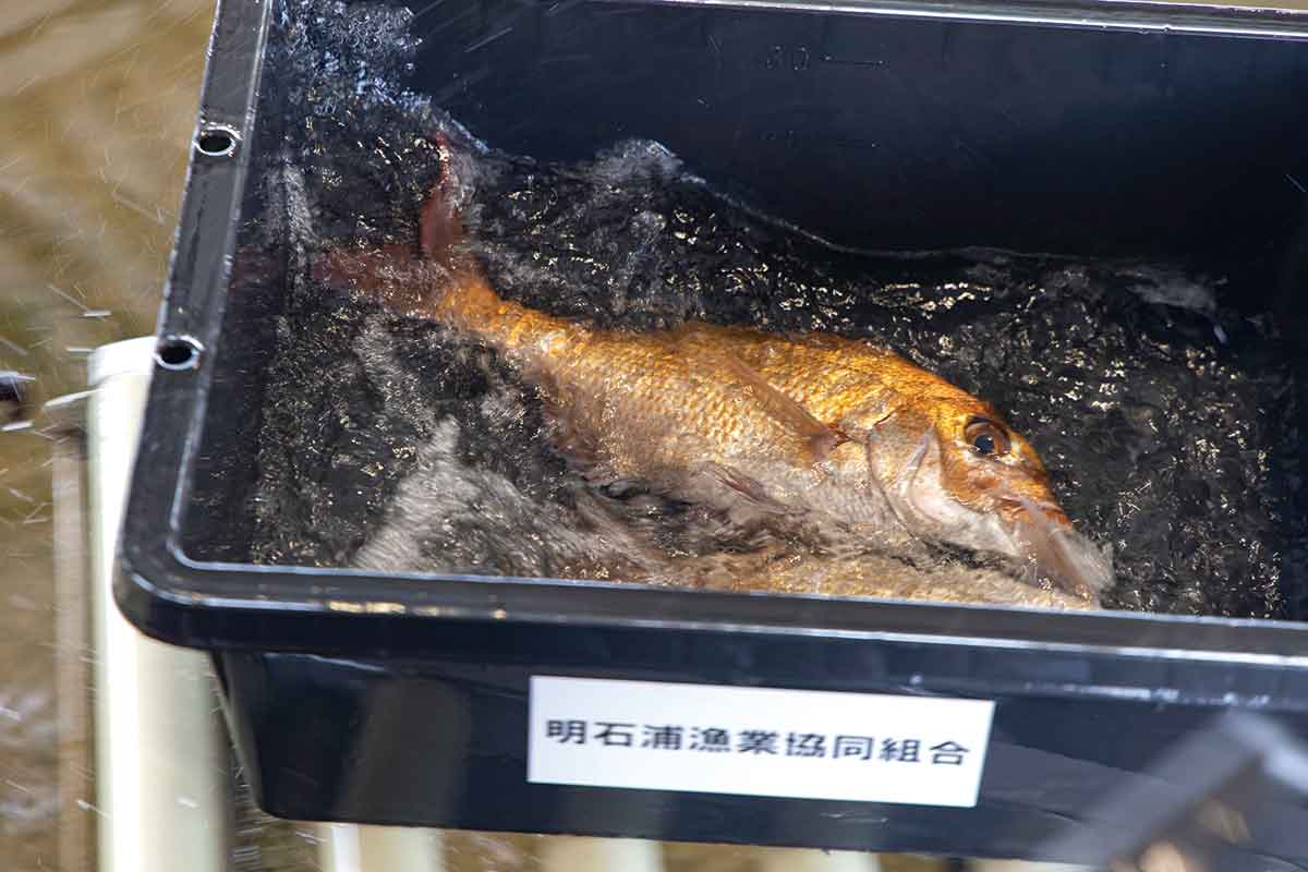 競り落とされた魚は“ 明石浦〆じめ” と呼ばれる伝統の技で新鮮さを保つ。