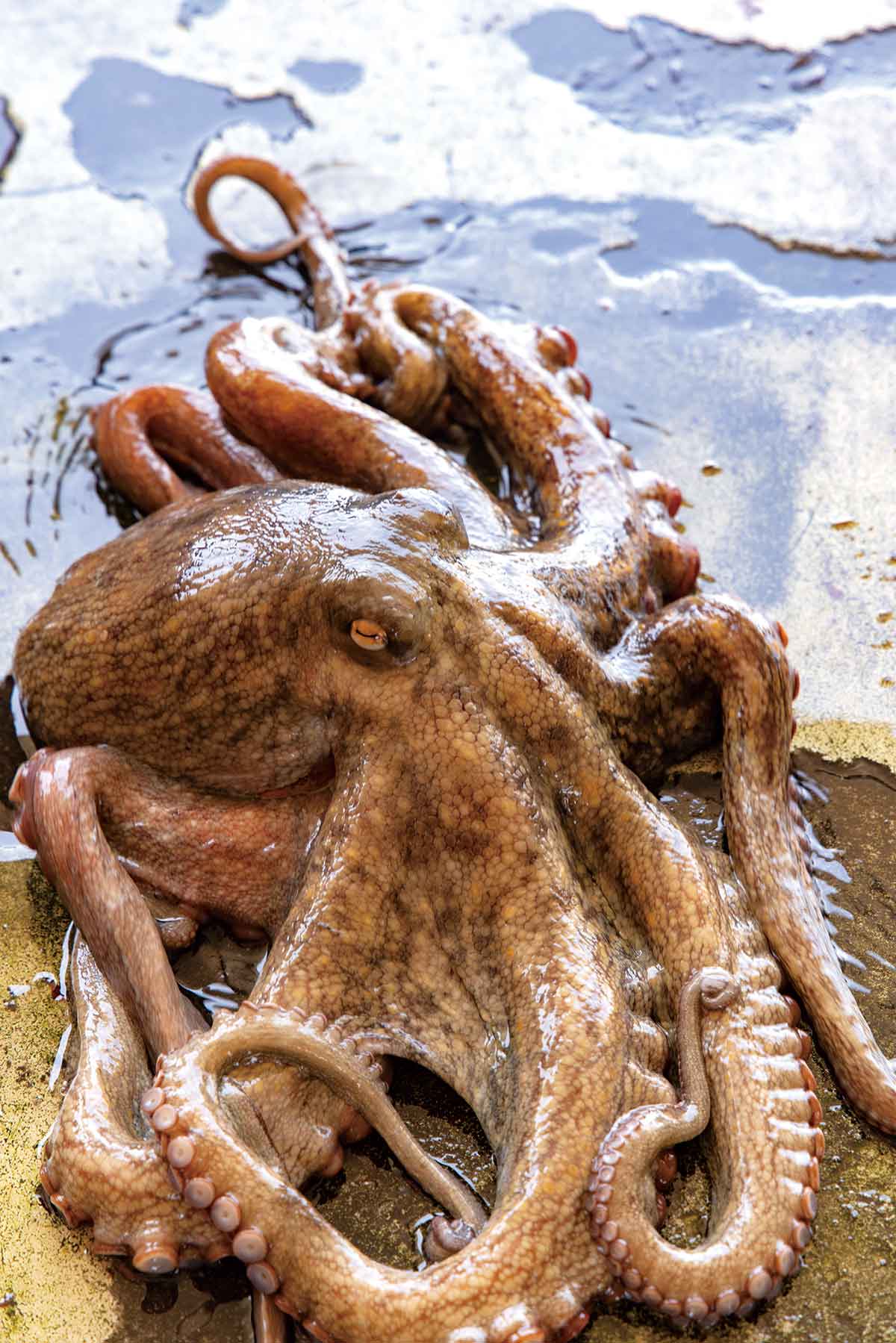 水揚げされたばかりの元気な明石蛸(真蛸)。