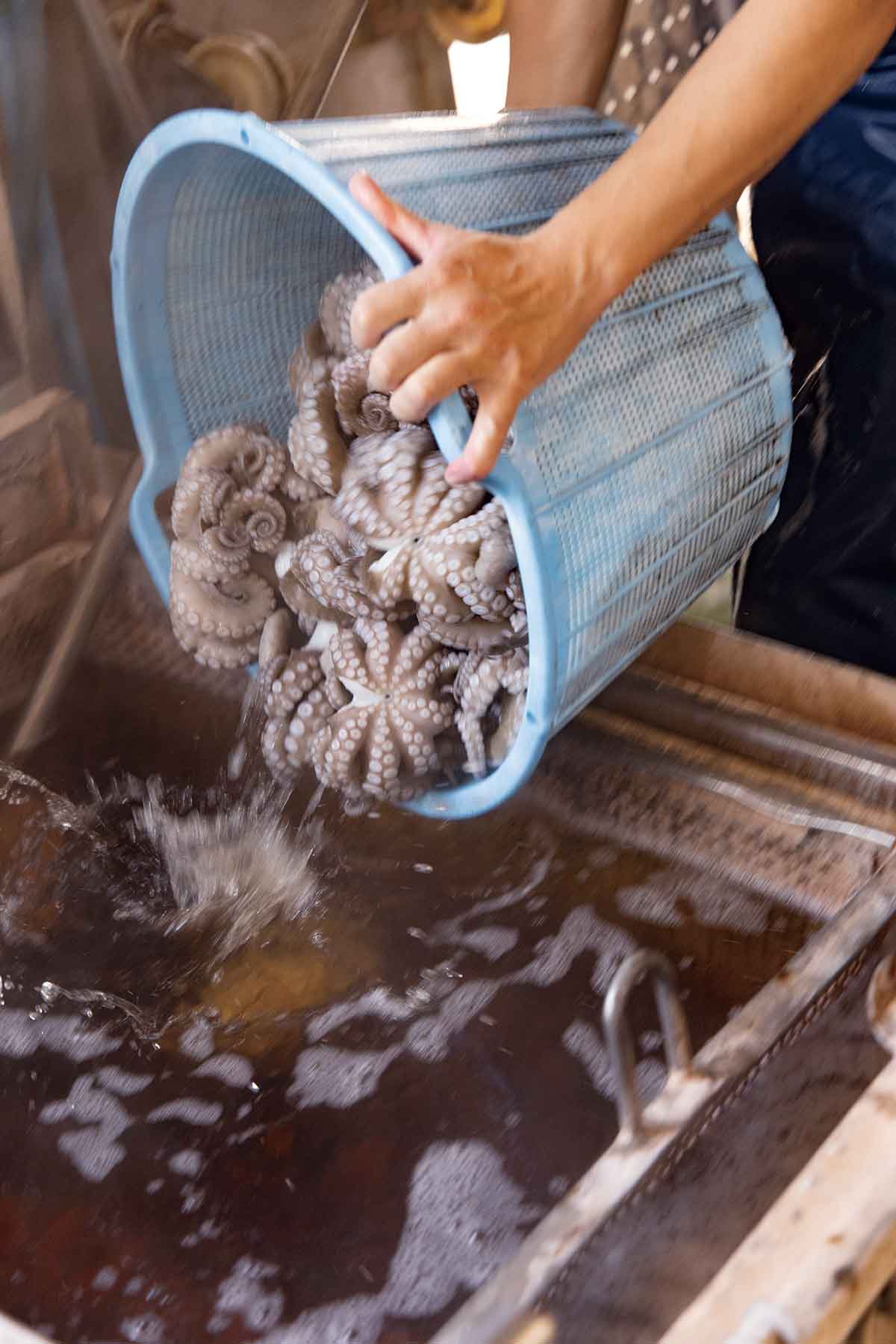 明石蛸はこうして極上の茹で蛸になる