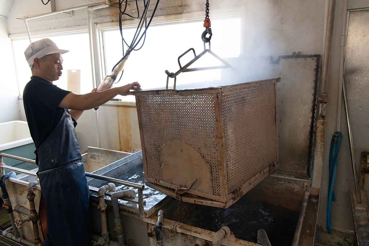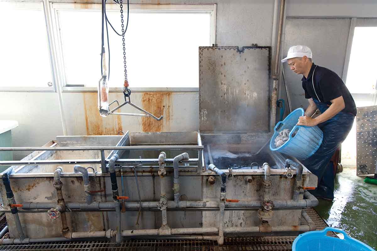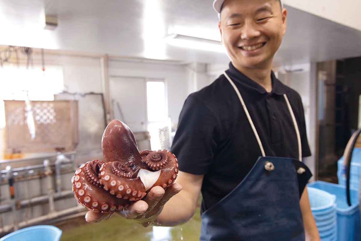 大正10(1921)年創業、水産物加工の老舗・金楠(かねくす)水産の四代目・樟(くす)陽介さんは受け継いだ技術力に磨きをかけ、たゆまぬ探求力で極上の茹で蛸を作る。