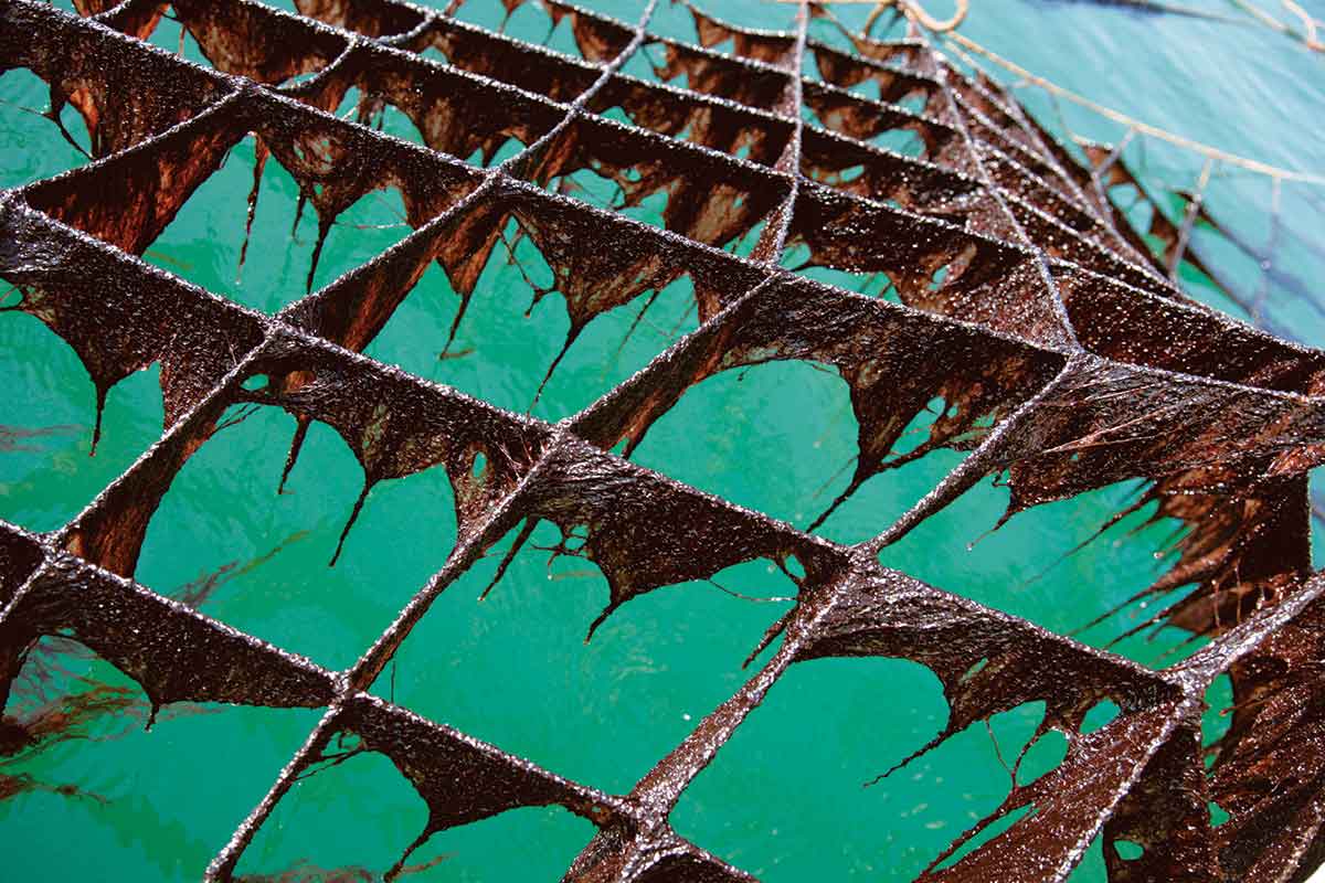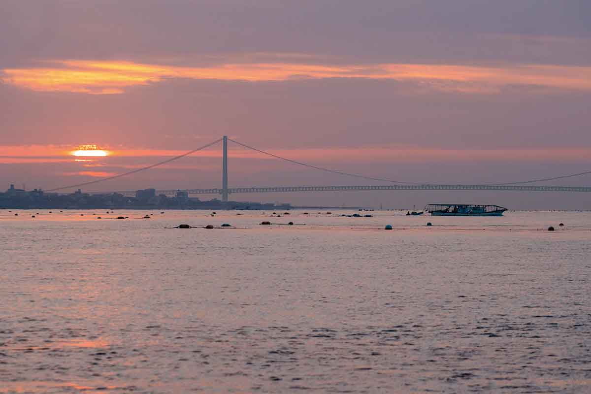 海苔も明石を代表する“まえもん”のひとつだ。「浮き流し式」という方法で養殖が行われている。網の周囲に浮きをつけ、流されないようアンカーで海底に固定し、網を海面に漂わせて育てる。この養殖方法によって、水深が深くて潮流が速い場所でも海苔養殖ができるようになり、瀬戸内海を中心に広まったそうだ。2022年度から兵庫県の海苔生産量は3年連続で日本一となっており、明石市はその4割を生産している。