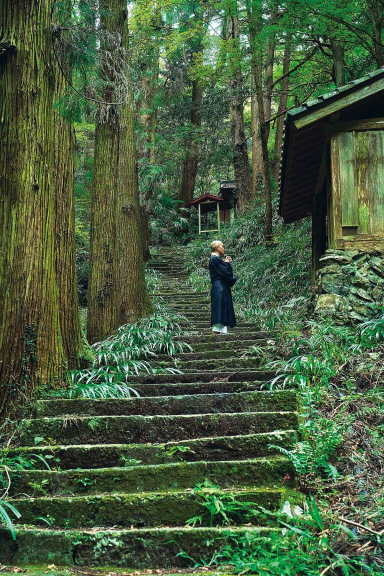 365段の石段を登るほどに森の気配は深まり、参道沿いには3万3千体もの石仏が静かに並ぶ。足元に群生するシャガは人の手で植えられたものだと、同じく行基が開創した最勝寺(さいしょうじ)の副住職・沼尻了俊(りょうしゅん)さんが教えてくれた。「昔、この道を多くの人が往来した証です」ーー。