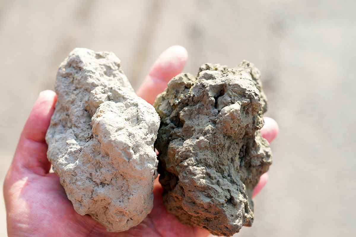 【クチャ】琉球石灰岩由来の微細な粘土質の土。水を含むと粘土に、それが乾燥すると非常に硬くなる。