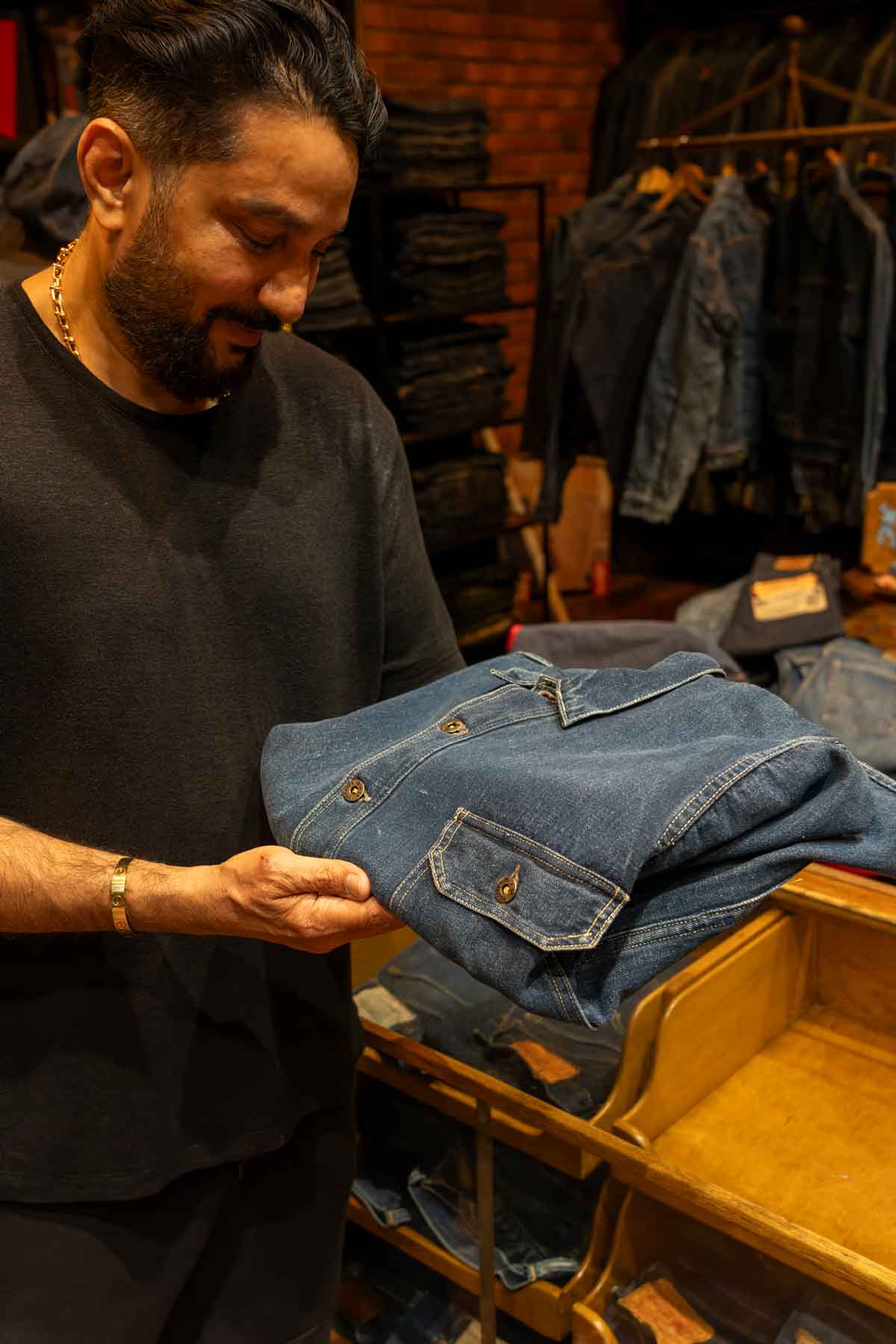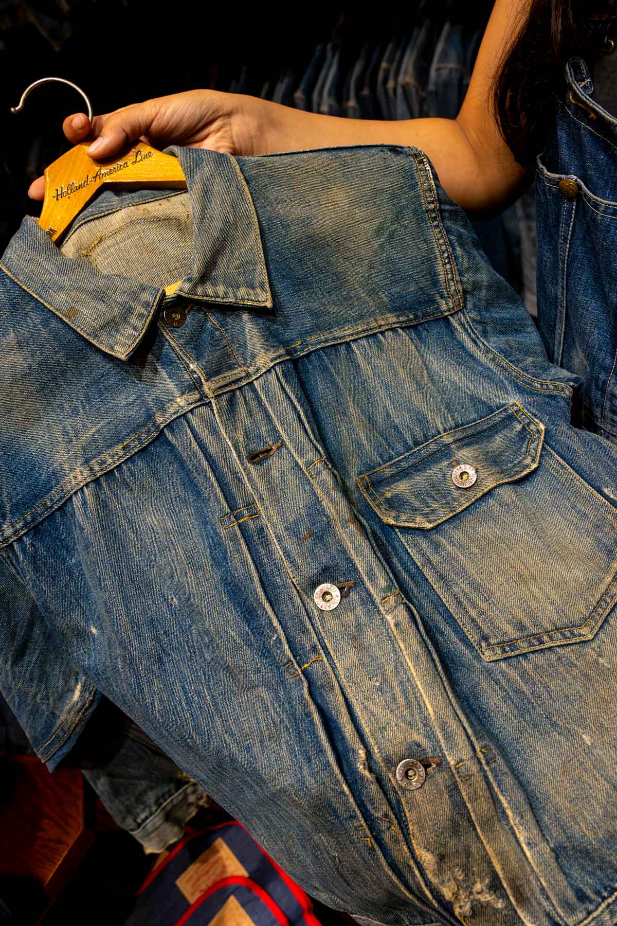 「倉庫で最初に見るのはタグでも色でもなく生地。それと量産品かそうでないか。ビンテージとして生きる力があるか。それを父に鍛えられた目で見るんだ。」
