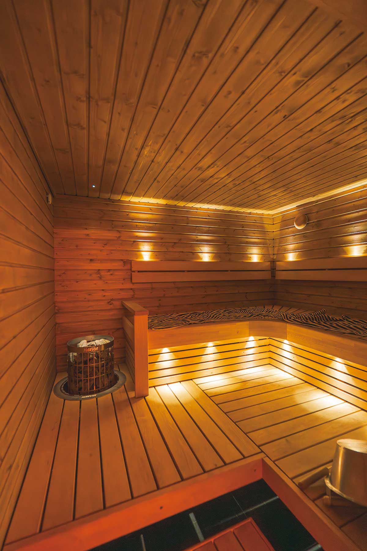 ヤムサ市に暮らすヤンネさんの家庭へ。地下にある、こだわりの照明が美しい電気式のサウナ室。