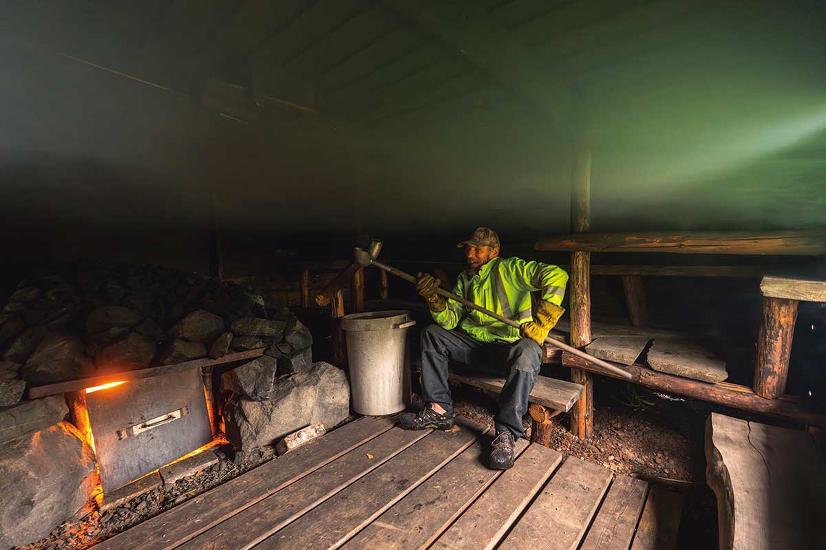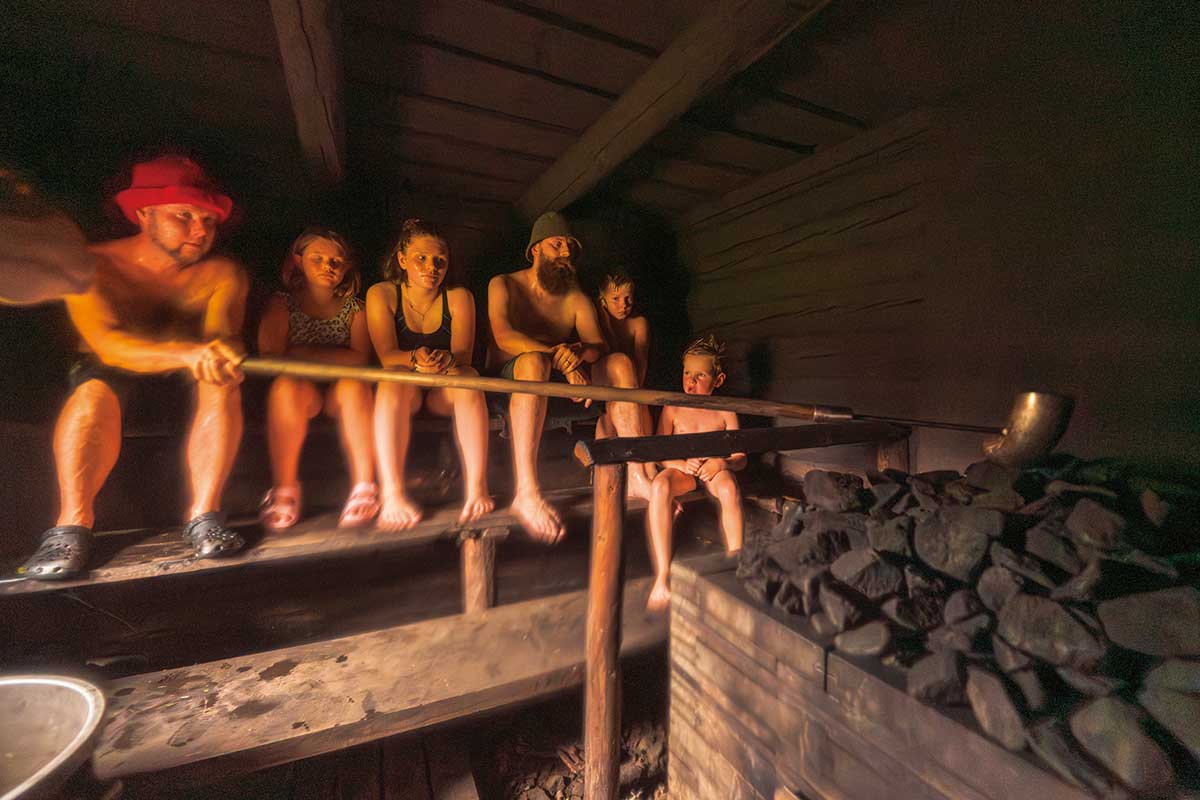 薪サウナの力に圧倒されているが、起源は2000年以上前。土の中のサウナに始まり、やがて木造の「スモークサウナ」が生活様式に組み込まれた。保存食を燻し、兵士の傷を癒やし、ときに命を迎える産室でもあったと知ると、その多様な営みに鳥肌が立つ。これが現サウナの原点だ。