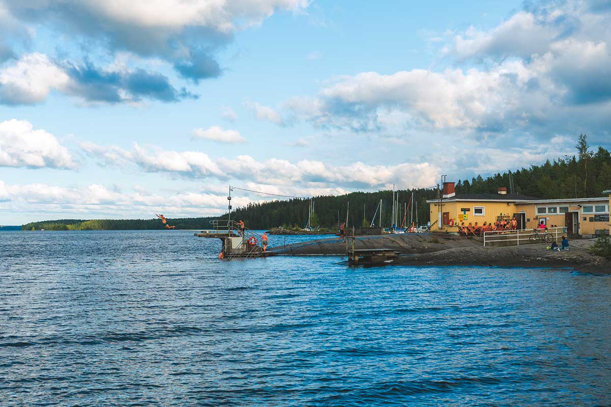 サウナ首都タンペレの湖畔にある公衆サウナ、ラウハニエミ。1929年オープンで創業96年の歴史を持つ。ナシ湖の畔にあり、森も近い。ラウハニエミは「安らかな岬」という意味。大小2つのサウナ室があり、熱さが人気。