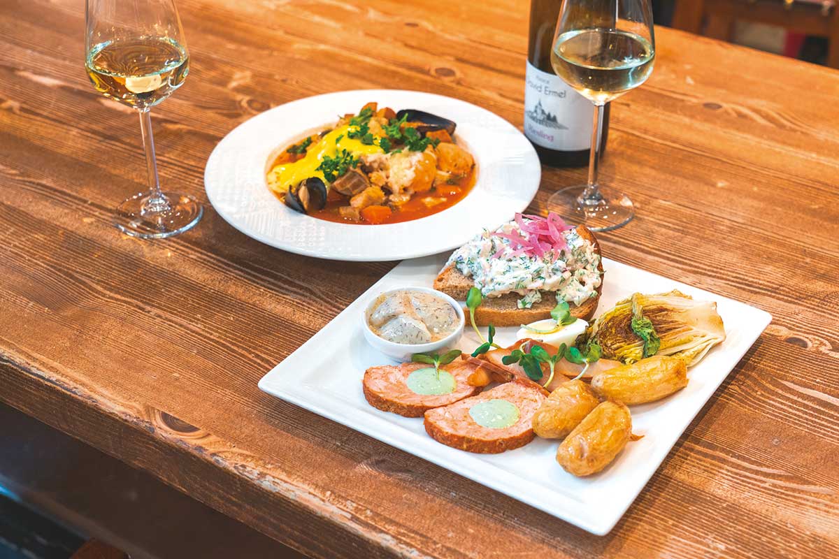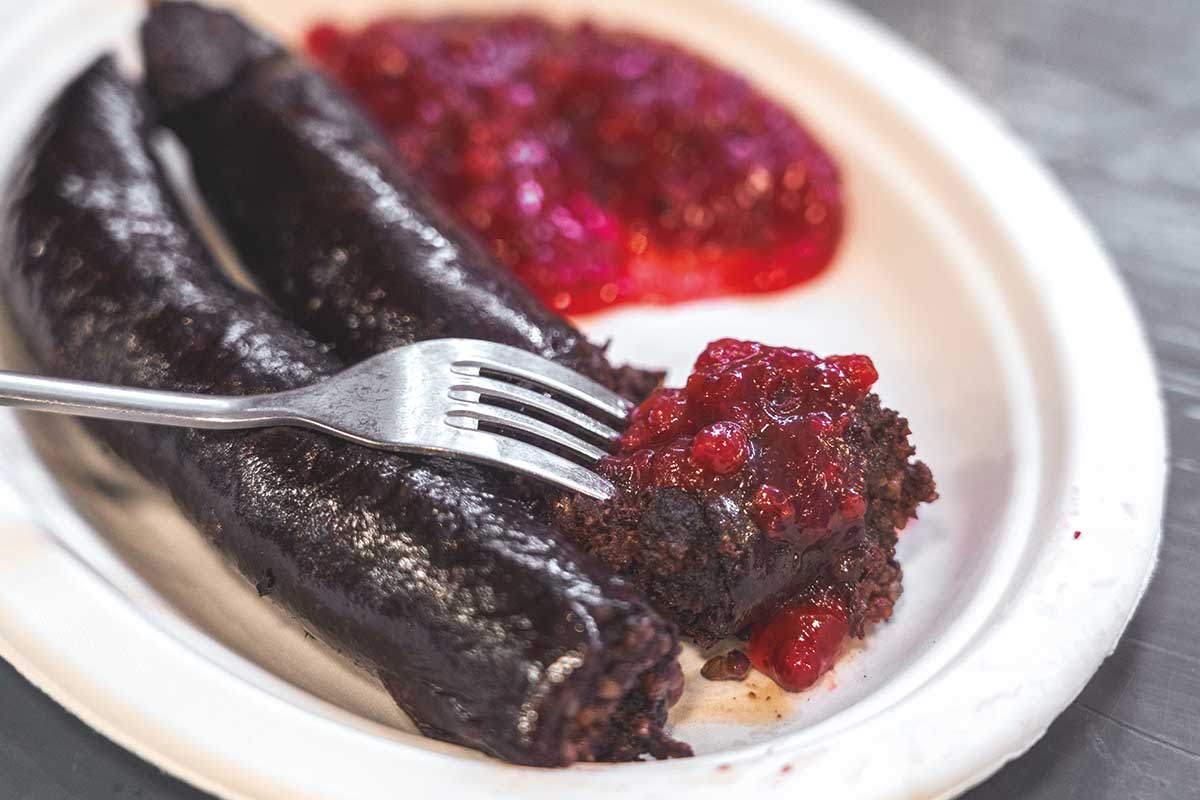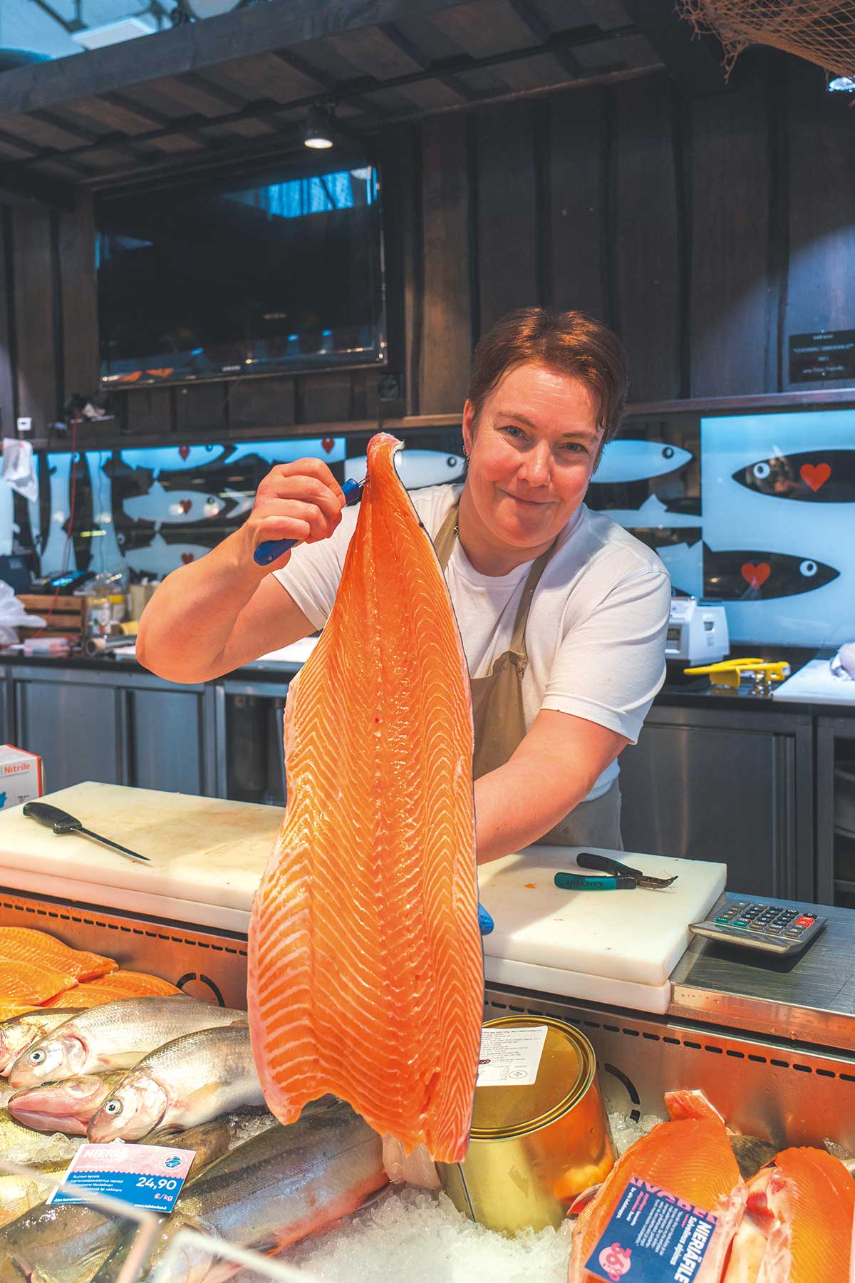 タンペレの森と、街のマーケットへ(きのこ狩りは必ずきのこの見分けができる人と)。マーケットはシーフードや乳製品が充実しており、精肉店にはトナカイの肉が並ぶ。北欧のサーモンや「魚介スープ」は絶品。館内には飲食店も。黒いソーセージは、ムスタマッカラといって、伝統料理のひとつ。豚ひき肉に血液や穀物などを混ぜたもの。