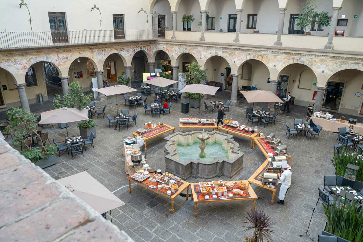 「HOTEL QUINTA REAL PUEBLA」に滞在すると、歴史は展示物ではなく、今も息づく体験なのだと気づかされる。1593年築の修道院建築を生かした空間では、客室のたたずまいも、レストランの装飾も、現役のキッチンも、この街の文化そのもの。週末のブランチまで含めて、宿泊が観光以上の学びと感動をもたらしてくれる。
