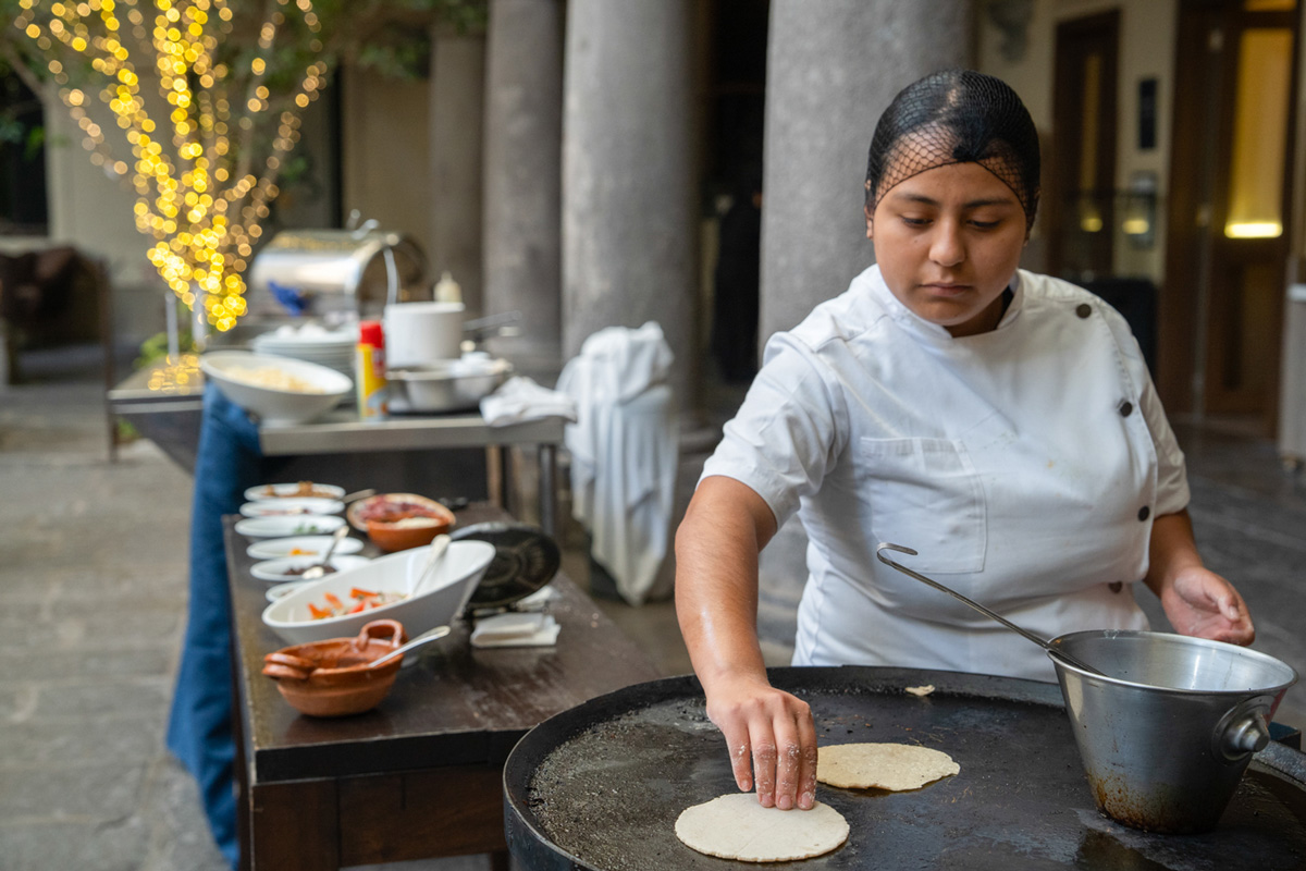珍しい郷土料理やメキシコの定番スイーツの他、プエブラ風のアクセントが加えられたコンチネンタルブレックファーストなど、ワクワクするような料理の数々が並ぶ。