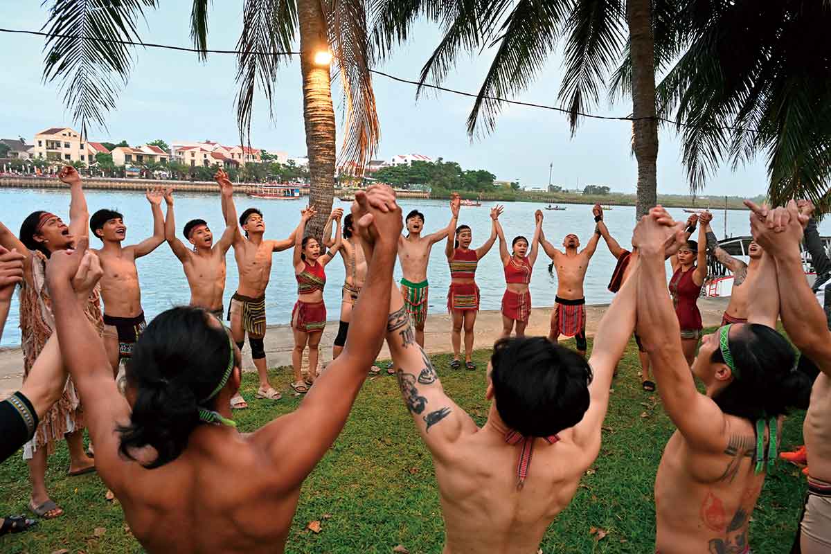 2012年から活動する「ルーン・プロダクション」は、その先端をゆくカンパニー。ランタンと灯篭流しの幻想的な風景が続くホイアン旧市街に、彼らの美しい劇場はある。連日上演中の「テダール」は、高原民族コホー族の言葉で、輪になって歩むという意味だ。