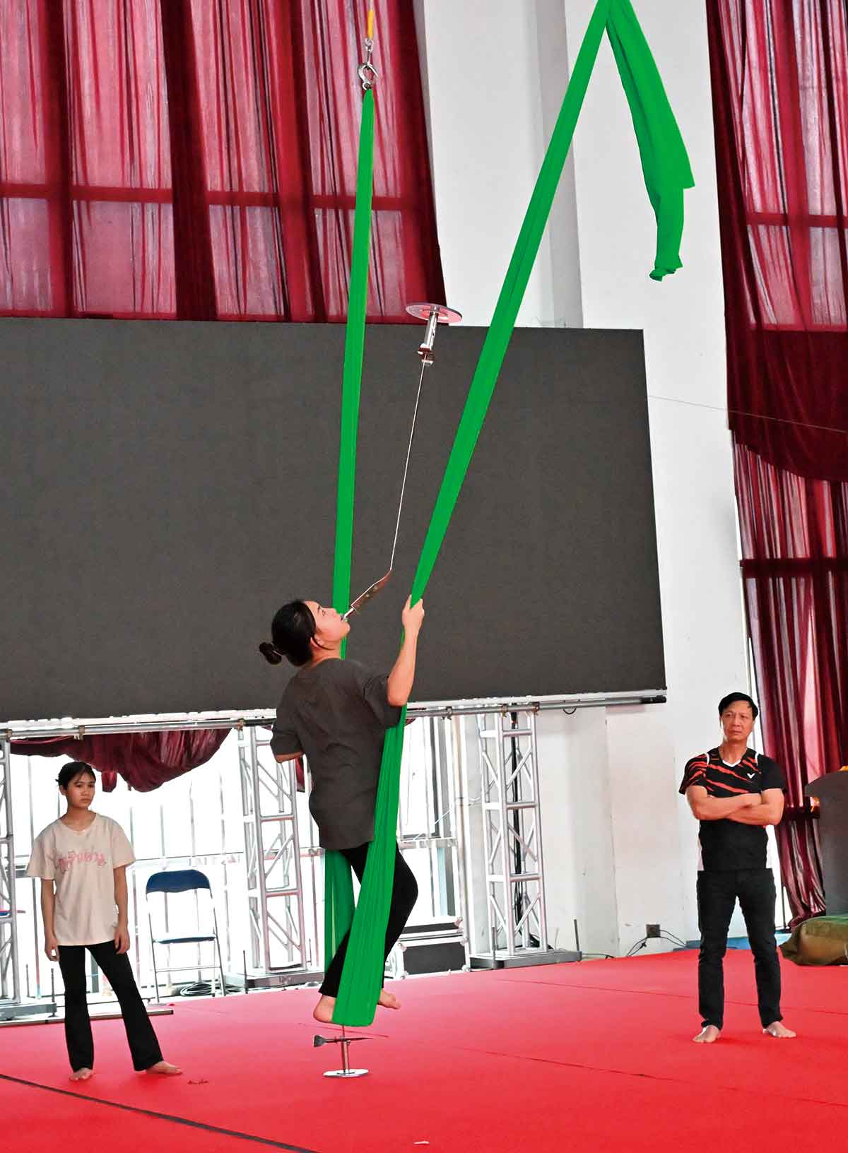 入学3年目のグエン・ホン・ウェンさんは、「小学4年の時にサーカスを観て魅力を感じました。歌もダンスも練習して幅を広げたいです」。指導するズィ・アイン先生は、「彼女は飲み込みが早く表現力もうんと成長しました。自分の40年の経験を伝えることが大切な役目です」と語る。