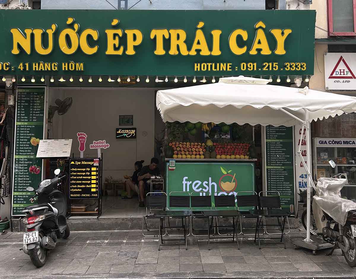 作りたてはビタミンもミネラルもたっぷりで、健康や美容にいいことはいうまでもない。暑い日や歩き疲れた日などは特に、テイクアウトしてついつい何杯も飲んでしまう。ハノイの中心街にあるとても小さなフレッシュジューススタンド「ヌオック・エップ・チャイ・カイ(Nước ép trái cây/fresh juice by Huong Vu)」には、なんとフレッシュジュースやスムージーが53種類もある。しかもフットマッサージ併設。